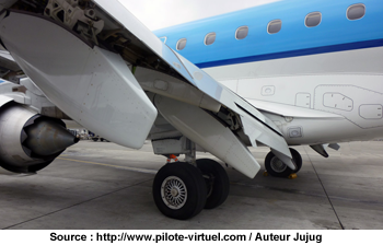 -ainsi que du train d'atterrissage qui est composé de plusieurs roues par unité. Au total il y a trois unités d'atterrissage : 1 devant et 2 derrière. Dans ces unités il y a d'énormes ressorts qui atténuent l'atterrissage. Pendant le vol, le train d'atterrissage est replié dans le fuselage de l'avion pour éviter la traînée.